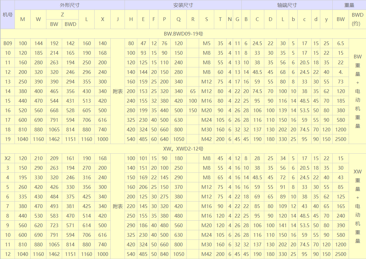 BW.BWD XW.XWD型(單級 )擺線針輪減速機